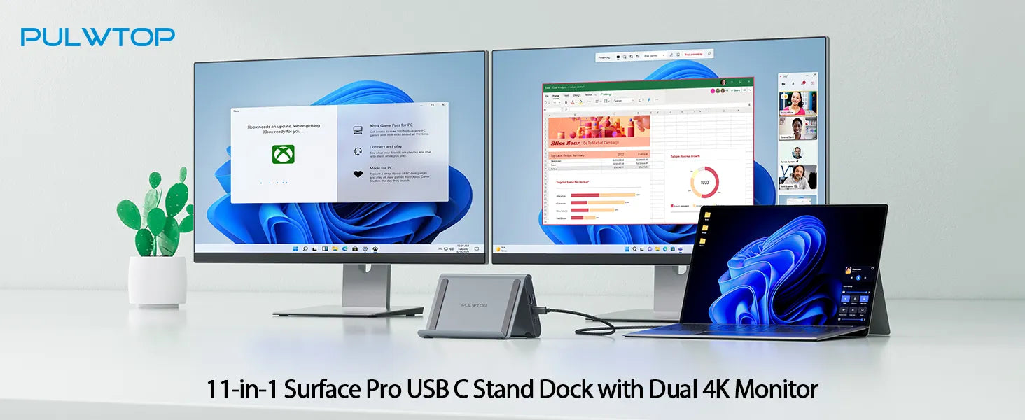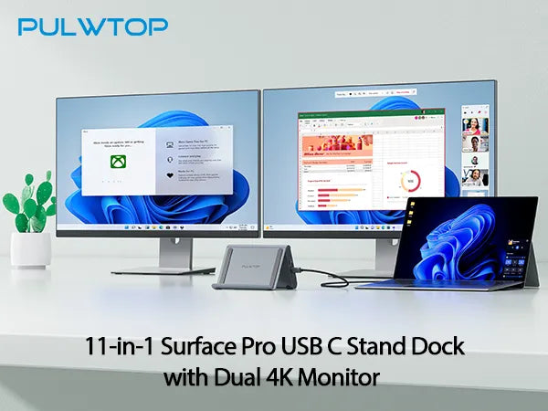 PULWTOP USB C Docking Station Dual Monitor for Windows & Microsoft Surface Pro 11/10/9/8 (HDMI, USB-C/A 10Gbps, Ethernet)