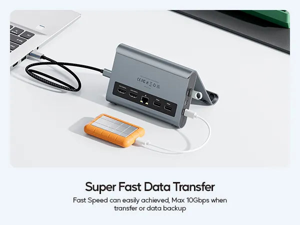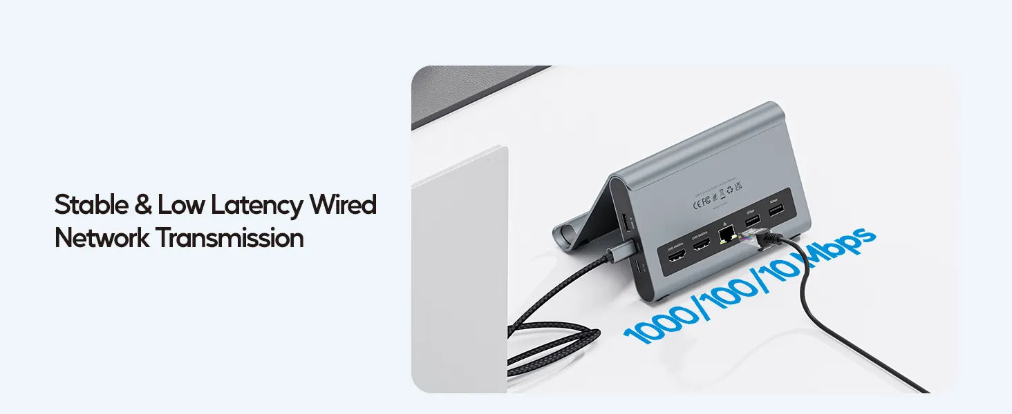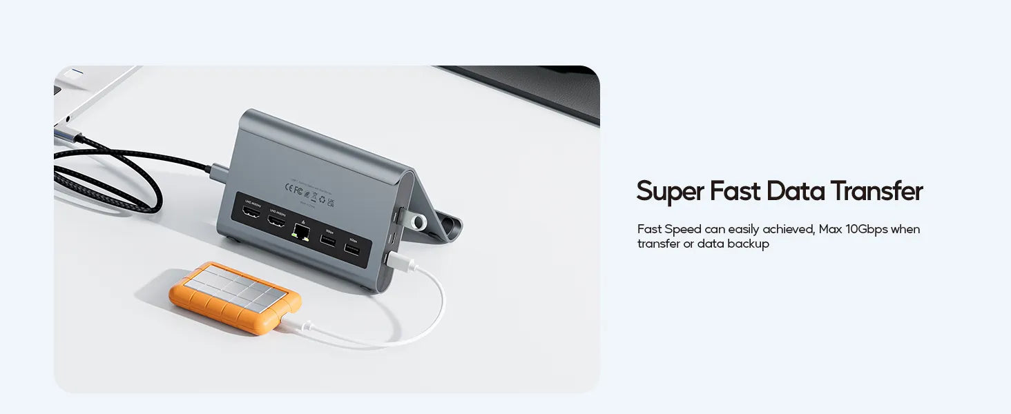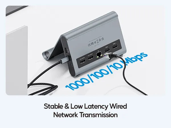 - 【Super Speed Data Transfer Dock】: This surface docking station has 2 USB C 10Gbps port (not support video and charging) , 1 *USB A 10Gbps 5Gbps and 2 *USB A 5Gbps to transfer files. The USB A 2.0 Port allows you to connect mouse/keyboard without lag. It improves your work efficiency. With PD 100W Charge Port and RJ45 Wired Gigabit Ethernet (10/100/1000Mbps).