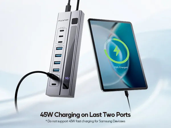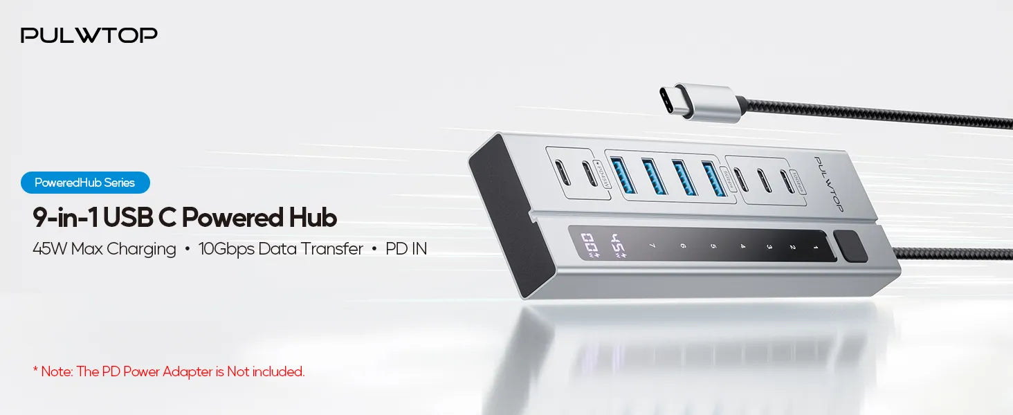 PULWTOP Powered USB C Hub for Laptops, Tablets and USB C Devices ( 9-in-1, USB A/C 10Gbps, 2 x 24/45W PD Charging)Power Adapter NOT Included