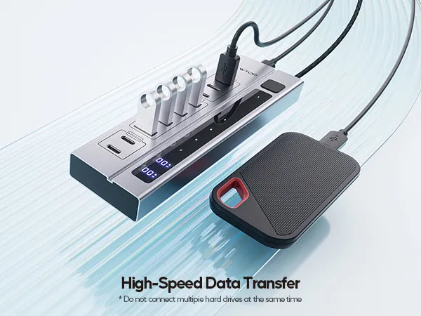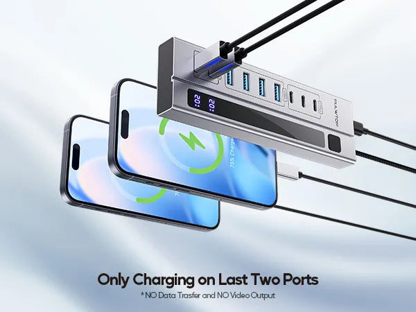 - ONE BUTTON CONTROL & HD LED DISPLAY - Equipped with a button to effortlessly control all ports at the same time. The USB-C PD charging ports can detect the charging power and display the real-time watts on the HD LED display when charging your iPhone/ iPad/ other USB-C devices.