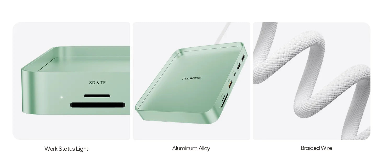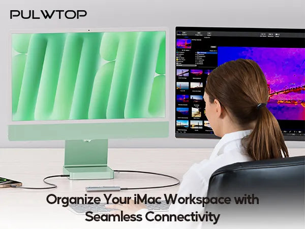 PULWTOP USB C Docking Station For iMac 24" M1/M3/M4 ( 11-in-1, M.2 SSD case, Green)