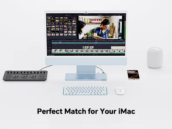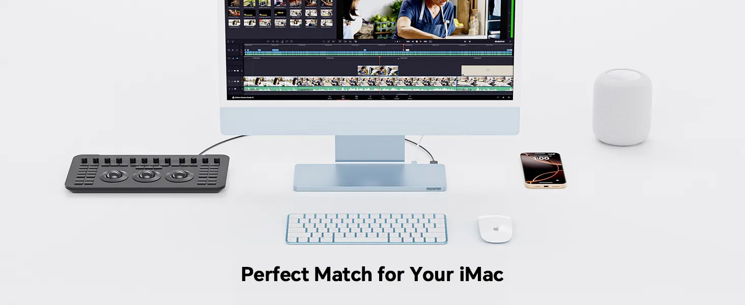 - SLIM & COMPACT, ALL IN ONE DESIGN - Finished with sleek aluminium alloy material for good heat dissipation, slim and compact, all in one design with a just-right groove of size 130*110mm fits the iMac base perfectly, making the usb-c dock feel like a natural extension of your iMac. A perfect complement to your 2021, 2023, 2024 iMac, adding both functionality and neatness of the desktop