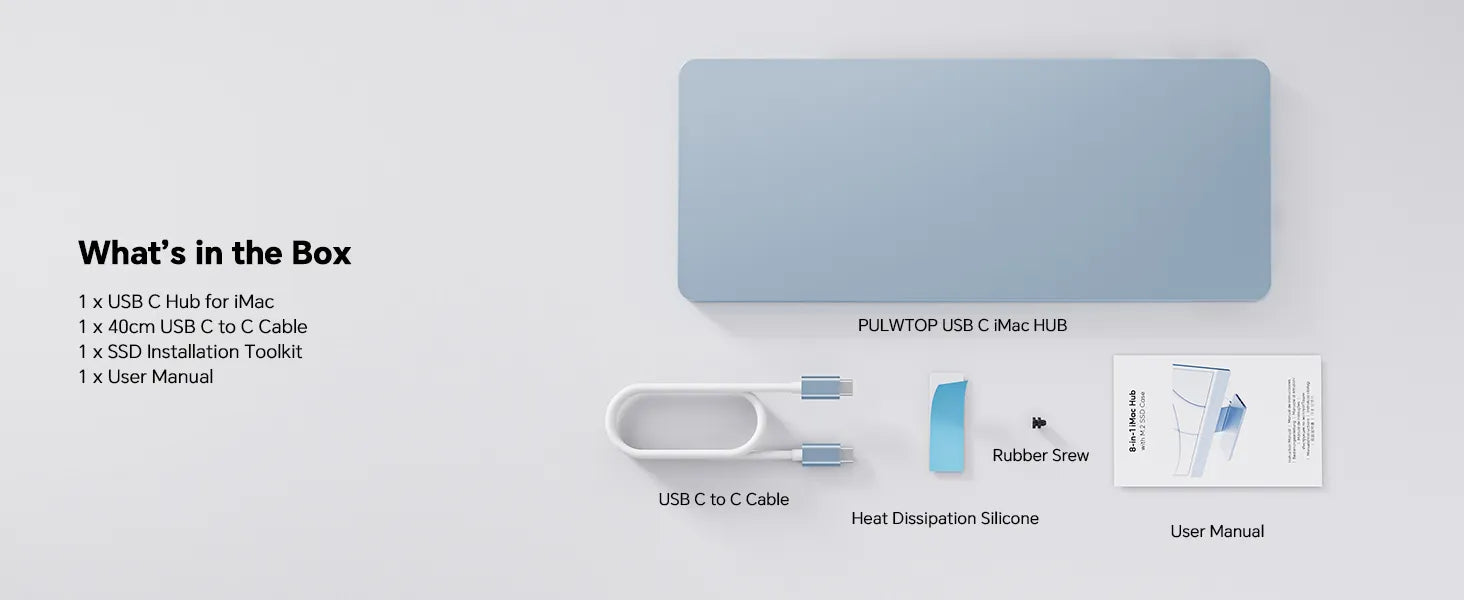 PULWTOP USB C Hub & iMac M1 M3 M4 Slim Dock Accessories ( 8 in 1, M.2 SSD case)