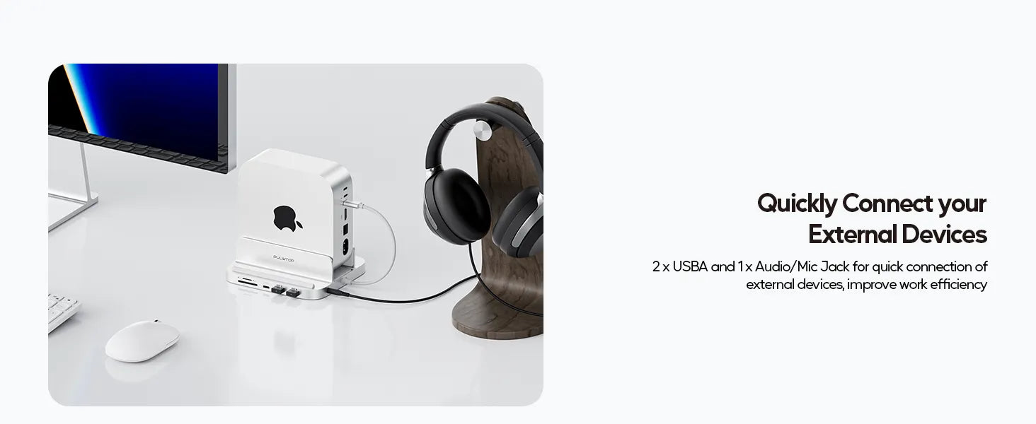 - VERTICAL MAC MINI M4 DOCK - Finished with silver sleek aluminum construction, both a Mac Mini M4 stand and USB-C Mac Mini docking station, making the USB-C hub feel like a natural extension accessories of your Mac Mini M4. Specially designed for Mac Mini M4/ M4 Pro 2024 to expand the connectivity and extend memory, making your work or entertainment easier and more plentiful than ever
