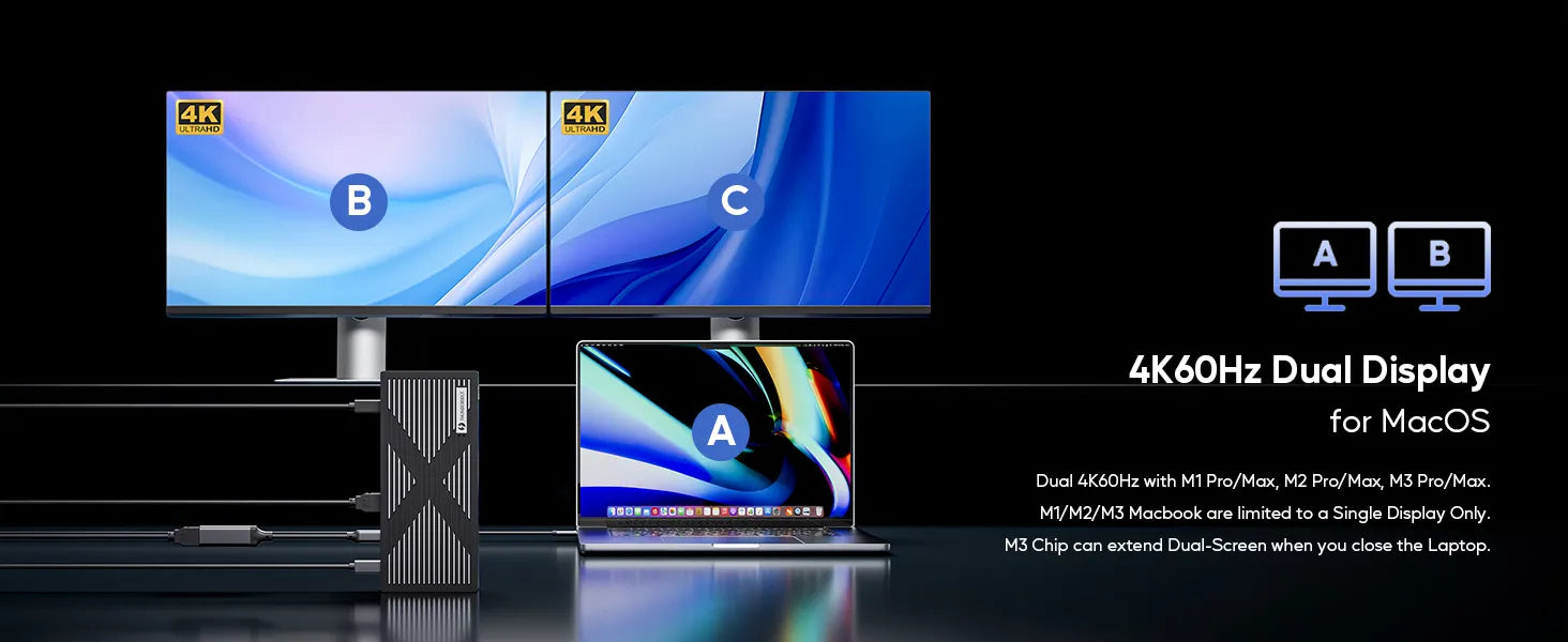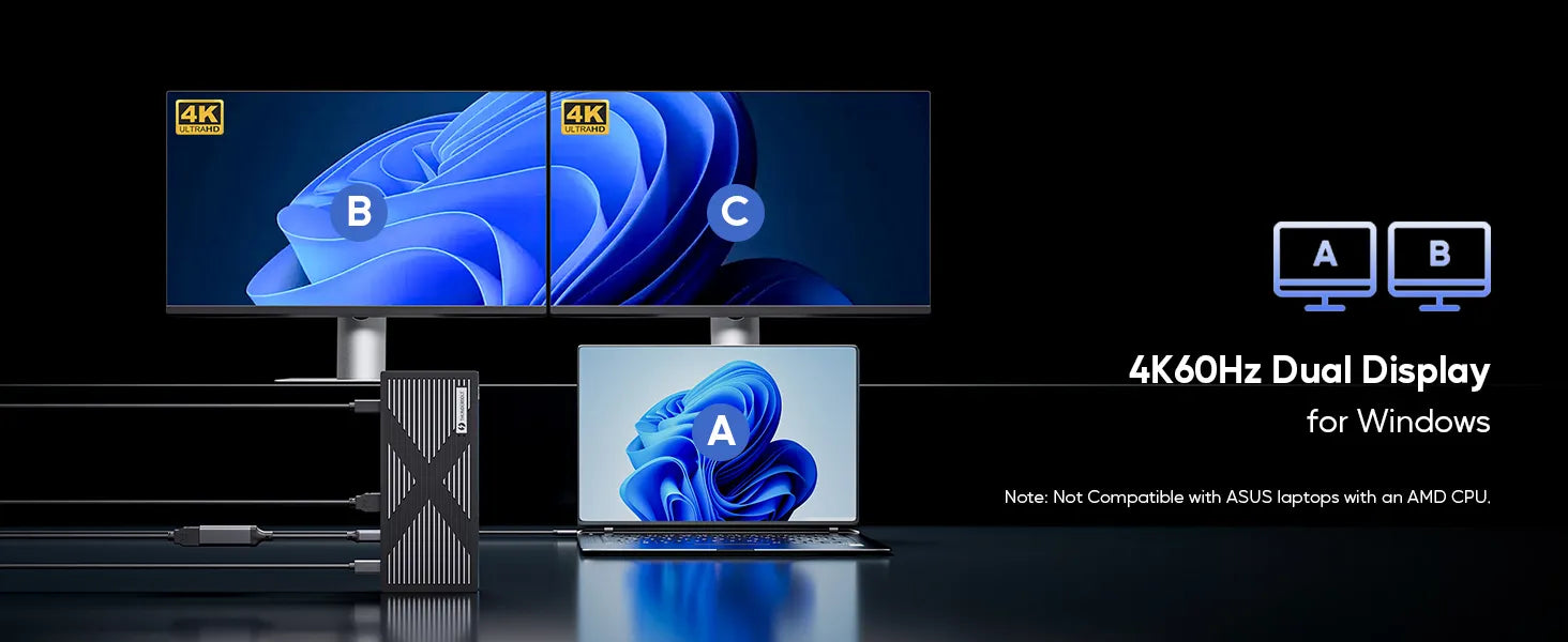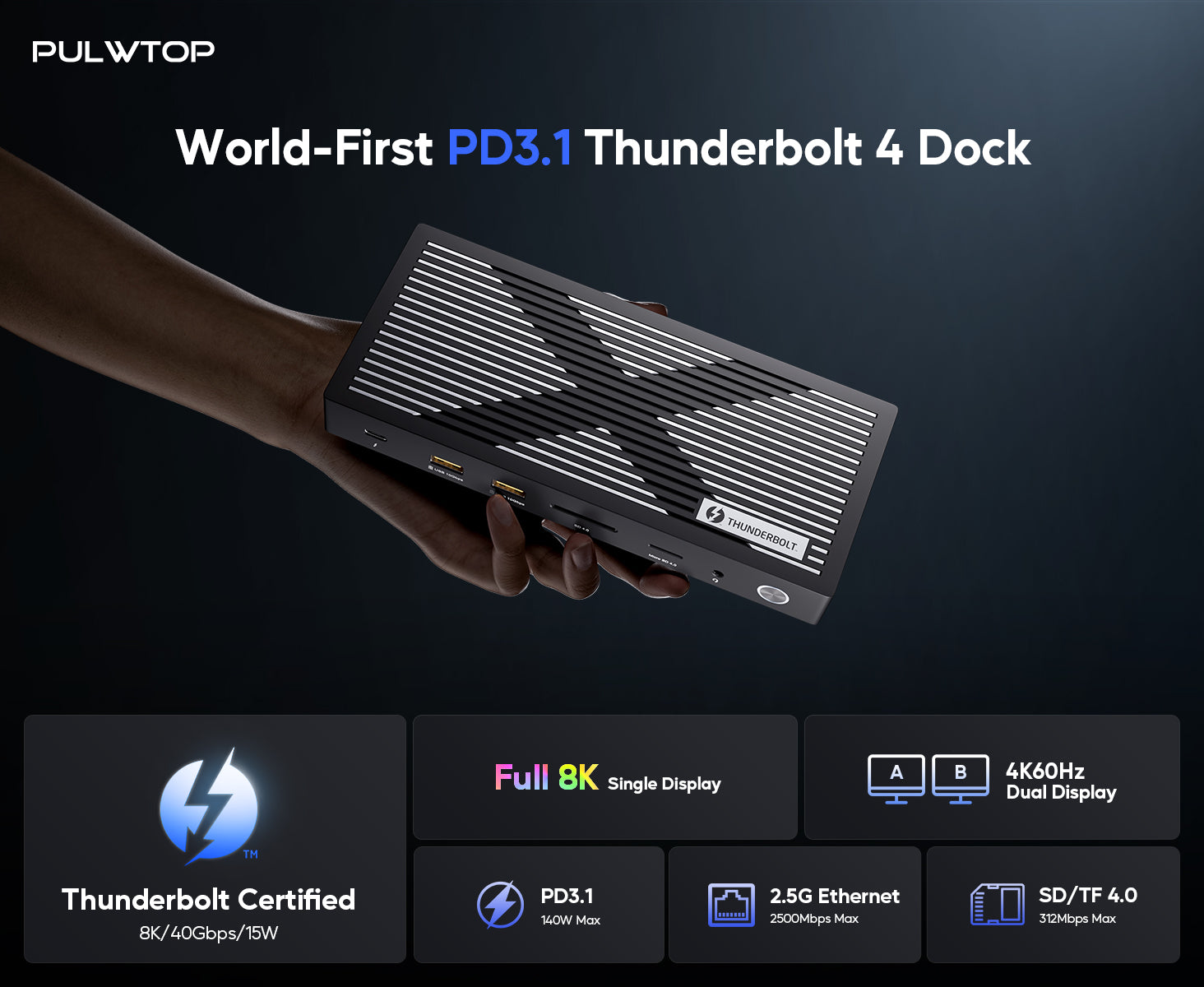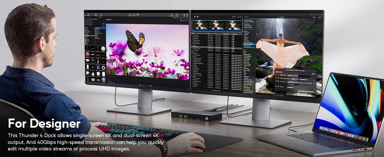 Thunderbolt 4 Dock with PD3.1 140W Adapter - 40Gbps Laptop Docking Station Dual Monitor, Thunderbolt Certified