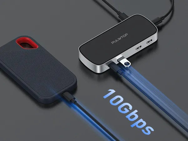 4. 10G High-Speed Data Transmission: PULWTOP universal docking station has a 10Gbps usb-c port and a 10Gusb-A port, which can transfer videos, pictures or large files in seconds. The docking station also have two 2.0 USB-A ports to provide the most stable connection for your mouse and keyboard.