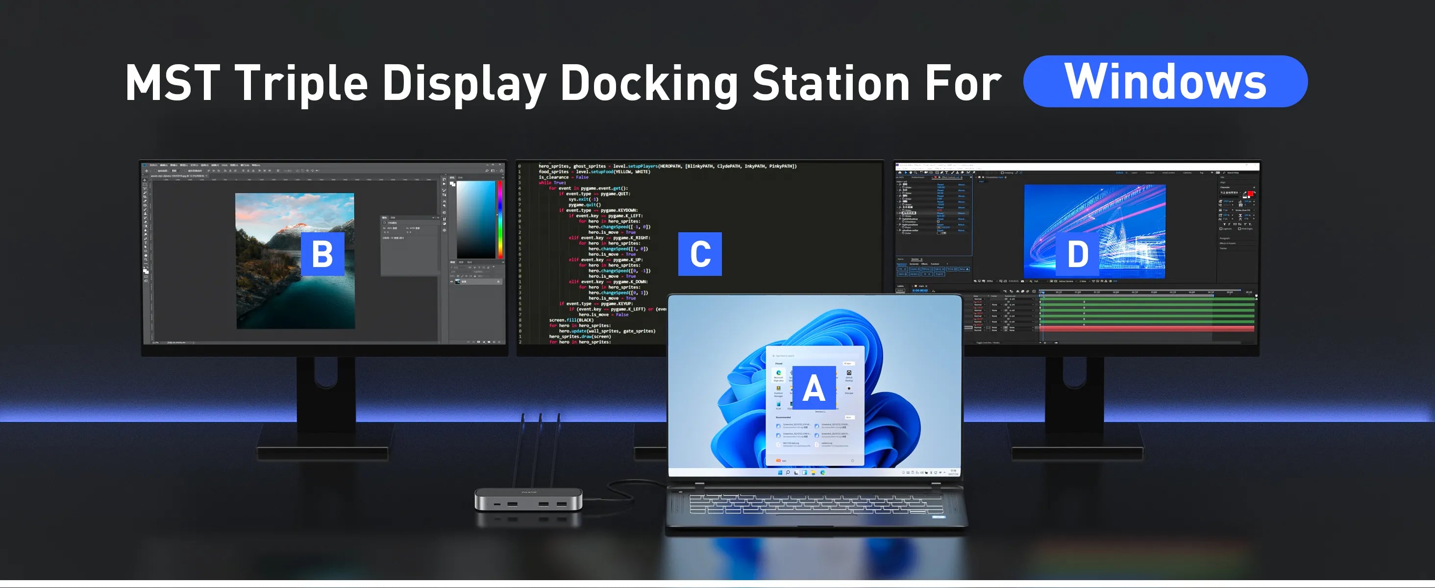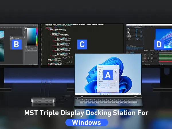3. 9 IN 1 Docking Station: The universal docking station with 65W power adapter( included ), 100W USB C-PD, 3 HDMI Ports, 2 USB-A 2.0, 10Gbps USB C and USB-A Data, Ethernet. This laptop dock expands your workstation to vastly improve efficiency while working.