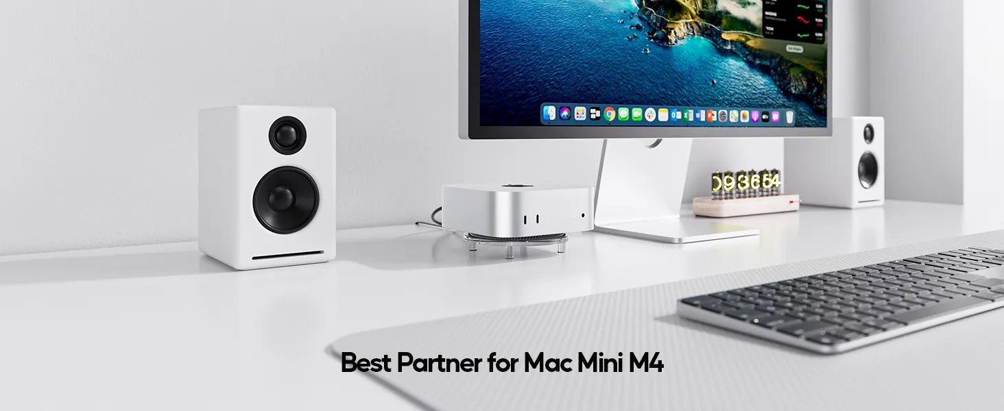 【Sleek Transparent Design】Crafted from crystal-clear acrylic, this Mac Mini M4 Stand complements the modern aesthetics of your Mac Mini M4/M4 Pro while blending seamlessly into any workspace. Its minimalist design highlights Apple’s iconic hardware without visual clutter.