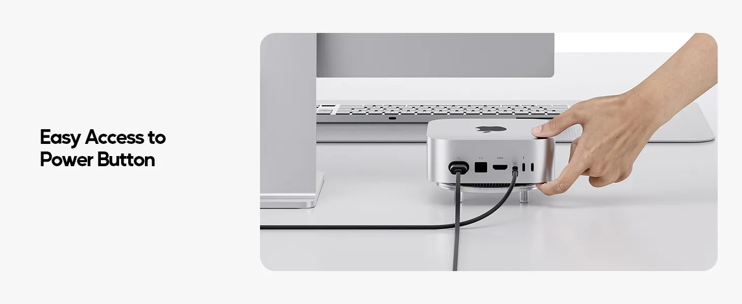【Effortless Power Button Access】Mac Mini M4 Pro Stand Features a strategically placed cutout for quick, easy access to the Mac Mini M4 power button. No more fumbling around—turn your device on/off or restart it in seconds.