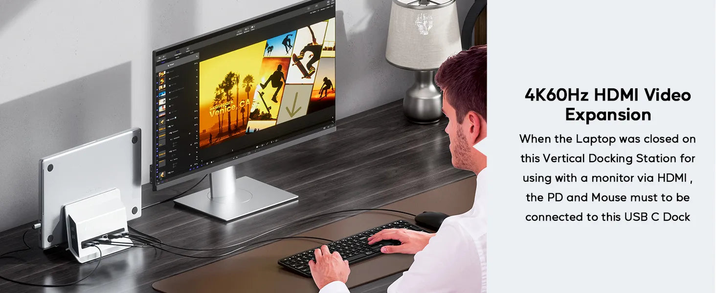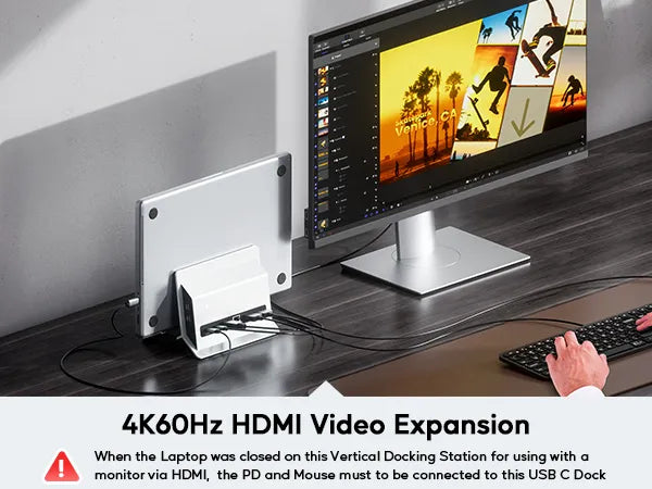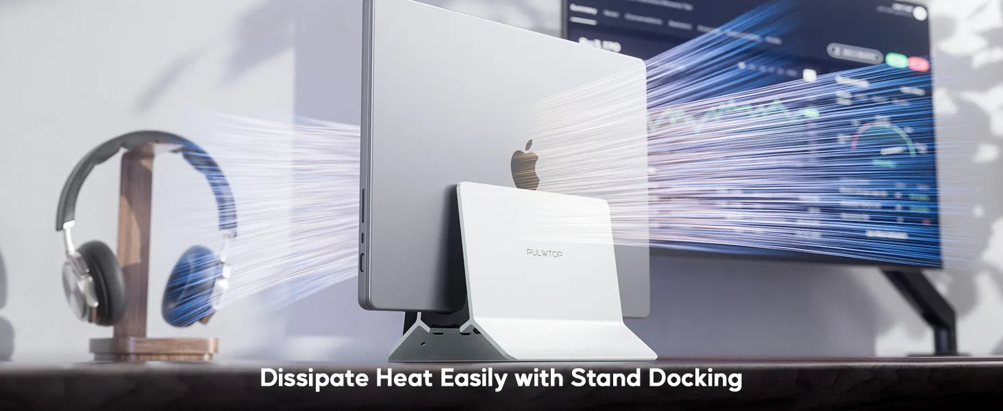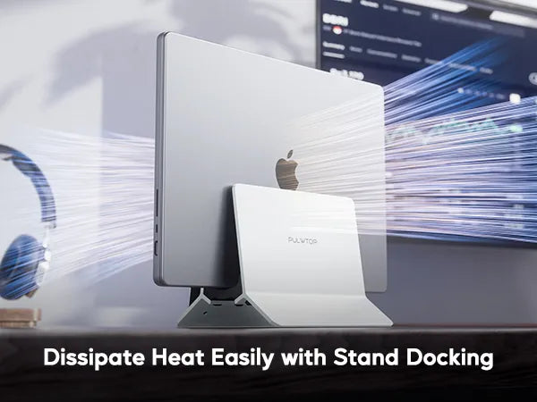 - BOTH DOCKING STATION & STAND FOR MACBOOK - Not only meet the needs of memory expansion and comprehensive connectivity, this macbook docking station stand with SSD enclosure also can be used as a laptop stand, allowing you to place your laptop horizontally or vertically on the desk, space-saving and keep your work desk tidy. Compatible with Macbook M1/M2/M3/M4, Macbook Pro M5 2025, MacBook Air, Mac Mini, MacBook Pro, laptops with USB-C port that supports functions of data transmission, video and charging. ★NOTE: NOT compatible with Mac Mini M4/M4 Pro 2024.