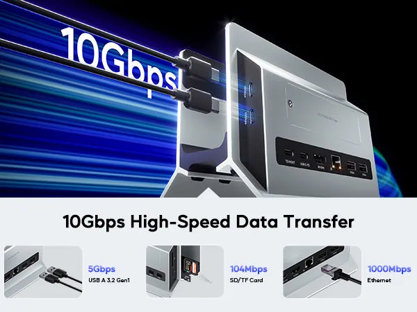 - UP TO 10Gbps FAST DATA TRANSFER - This MacBook Pro dock is equipped with 2 USB C 3.2 10Gbps ports and 2 USB A 3.0 5Gbps ports to transfer large files in seconds. The SD/TF card slots (480Mbps) support reading and writting 2 cards simultaneously. ★NOTE: 1) ALL USB C data ports ONLY support data transfer, DO NOT support video & charging; 2) Connect wireless mouse or keyboard to the USB A 3.0 5Gbps port may cause lag issues; 3) How to achieve Clamshell Mode: I. Pre-set your Macbook not to auto sleep; II. Connect a mouse to dock to wake up Macbook anytime; III. Connect a PD power adapter of 65w or above to the "PD IN" port