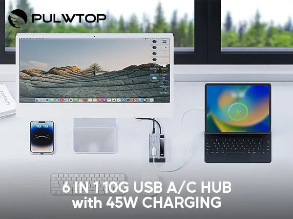 PULWTOP Powered USB C Hub with 72W Power Adapter, 10Gbps and 45W (Max) USB C Hub for MacBook, iMac, iPad, Phone (Not for Video)