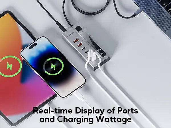 - 【10Gbps Speed Data Transfer】: The usb-c to usb-c hub supports data transfer up to 10Gbps, which is 20 times faster than a USB 2.0 port, it can transfer files, audio, and video efficiently in seconds to external devices. ★Note: The two USBC 3.2 in the middle of the usb c ports hub ONLY support data transfer.