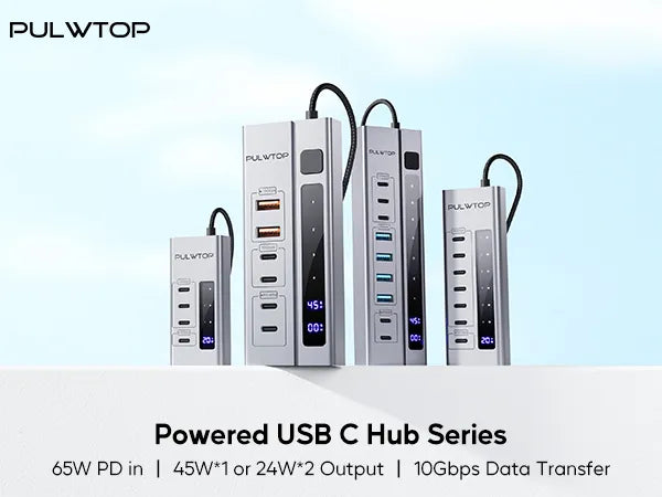 PULWTOP Powered USB C Hub with 65W PD-in Power Adapter