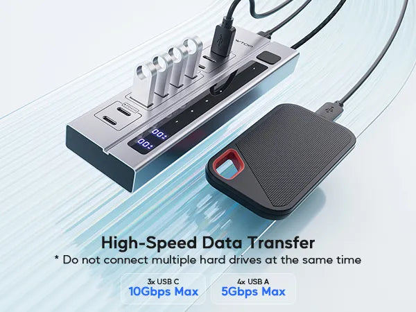 - ONE BUTTON CONTROL & HD LED DISPLAY - Equipped with a button to effortlessly control all ports at the same time. The USB-C PD charging ports can detect the charging power and display the real-time watts on the HD LED display when charging your iPhone/ iPad/ other USB-C devices.