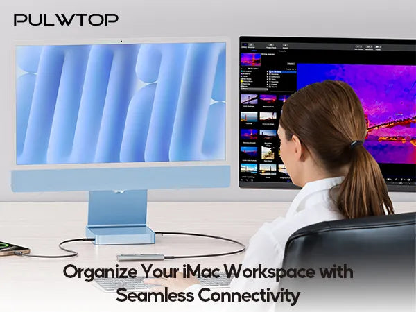 PULWTOP USB C Docking Station For iMac 24" M1/M3/M4 ( 11-in-1, M.2 SSD case, Blue)