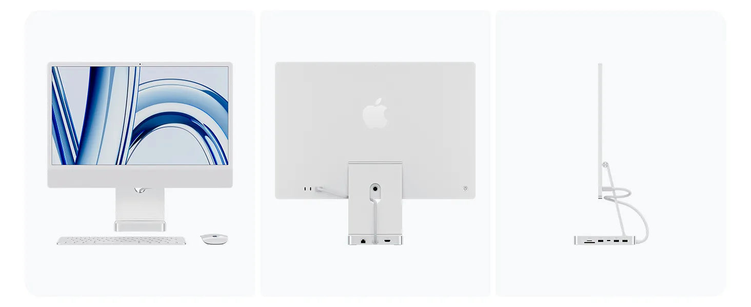 - INTEGRATED DOCK DESIGN FOR IMAC M1/M3/M4 - Finished with aluminium alloy material for good heat dissipation, slim and compact, all in one embedded design perfectly fits the imac 24-inch 2021/2023/2024, making the usb-c dock & desk mount to feel like a natural extension of your iMac. Easy to use, no software, drivers, or complicated installation required, just plug and play. ★NOTE: It does not fit iMac 2020 and earlier models