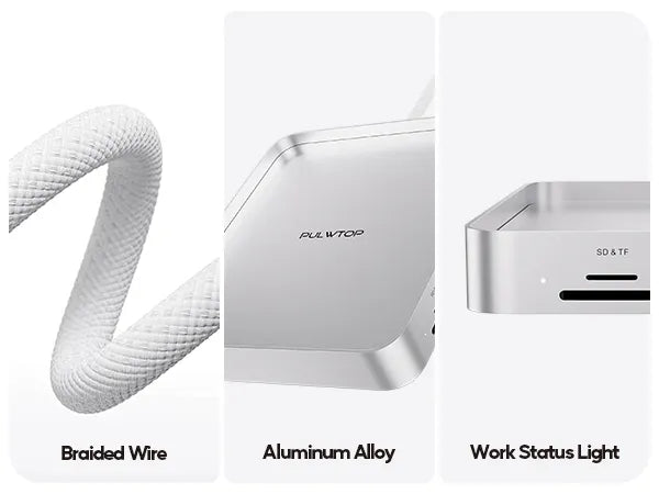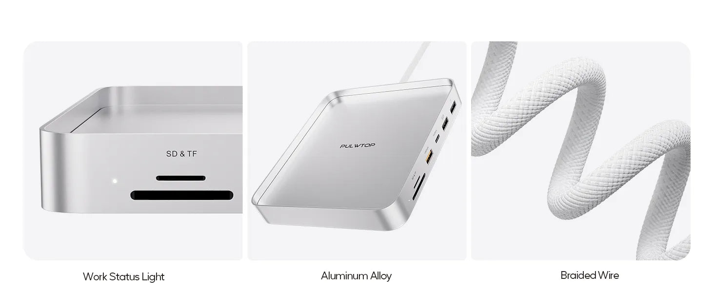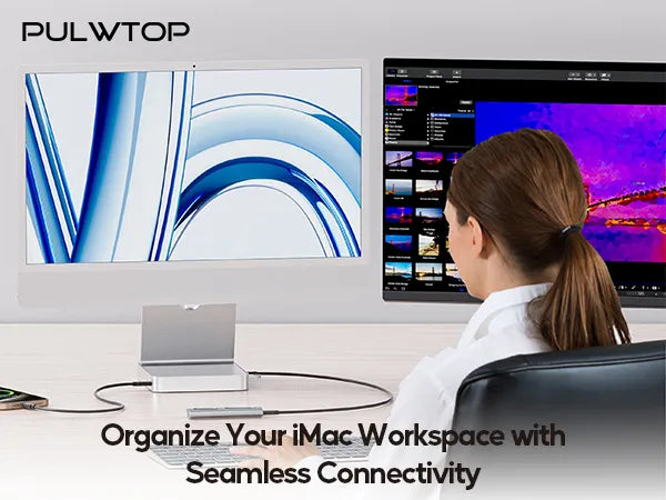 PULWTOP USB C Docking Station For iMac 24" M1/M3/M4 ( 11-in-1, M.2 SSD case, Silver)