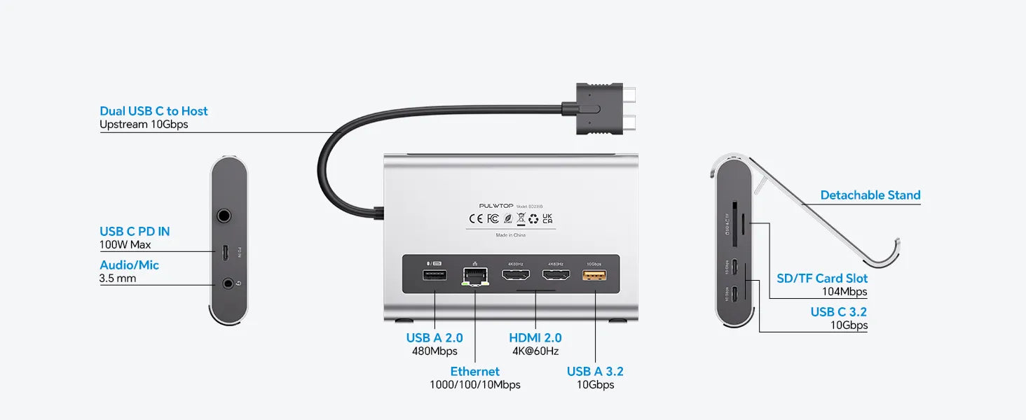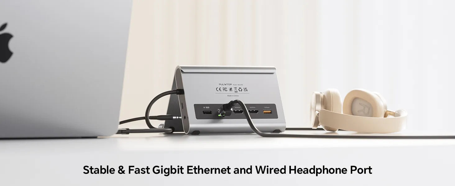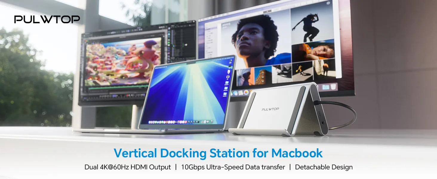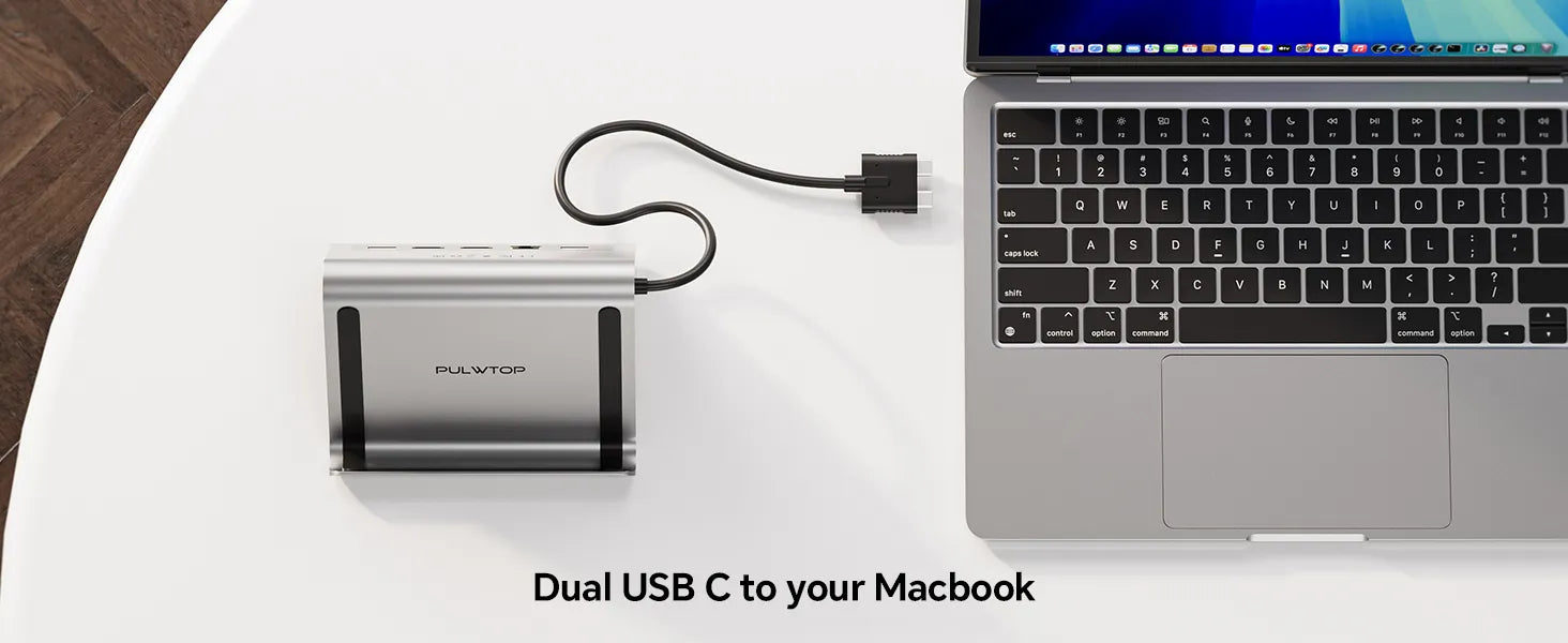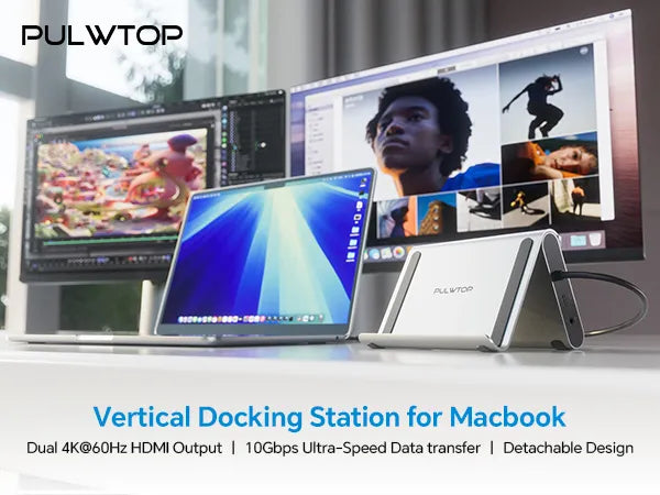 PULWTOP MacBook Docking Station Dual 4K@60Hz Monitor ( 2 HDMI, PD, Ethernet, USB A/C 10Gbps, Audio)