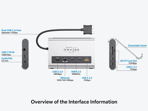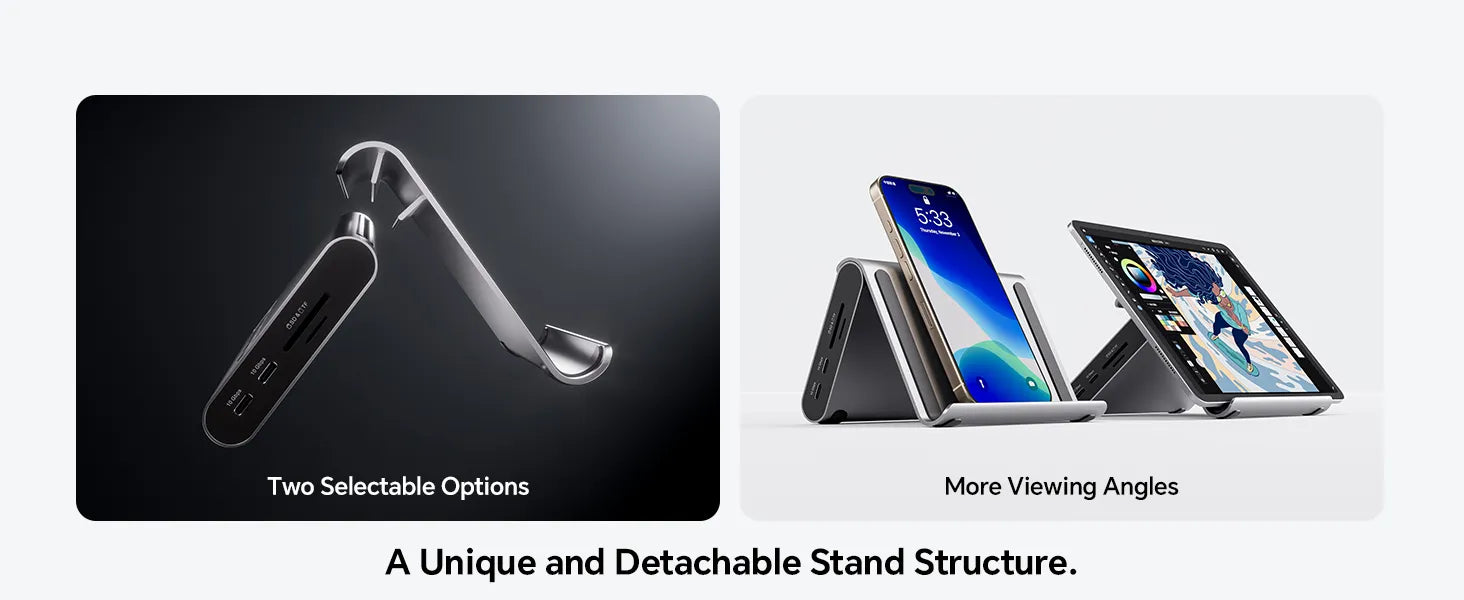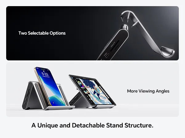 - 【11 in 1 Docking Station】: This Macbook Pro Docking Station stand comes with 2 x 4K@60Hz HDMI for HD video output, 1 *USB A 10Gbps, 2 *USB C 10Gbps, 1 *USB A 2.0, SD/Micro SD USH-1,100 Max PD IN, RJ45 wired Gigabit Ethernet.Also features with holder for your laptop,Tablets,and phones 【Note: Please connect a power adapter (Not included) of 65W or above.】※【NOTE 1】Holder for Macbook Pro/Air, Only supports closed lid stand function, does not support opening the screen to use.※【NOTE 2】Do not support using with laptop case for stand function.