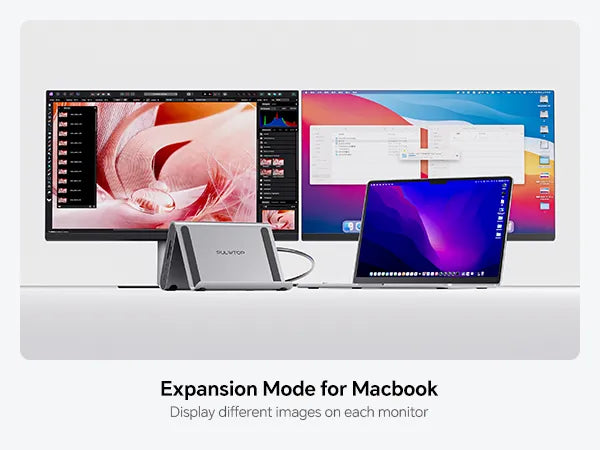 - 【2 in 1 Docking Station with Stand】This macbook pro docking station dual monitor not only can meet the various needs of users, but also meet the laptop stand function (improve desktop utilization). The demolished bracket is enough to act as a laptop bracket to help increase space, create more working space, and increase productivity.
