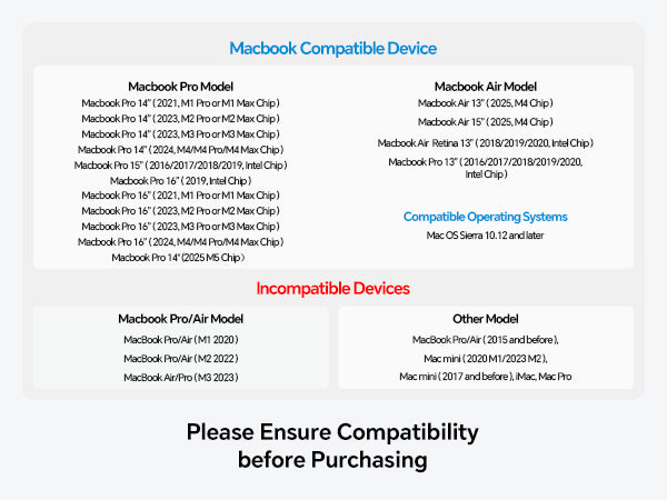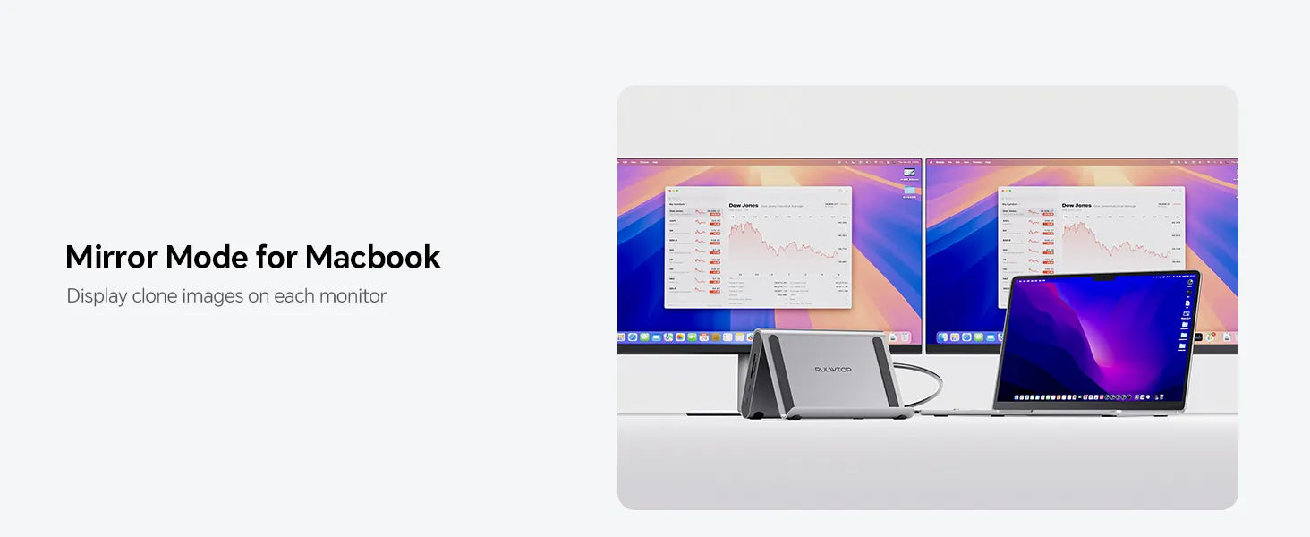 - 【Compatibility】This PULWTOP Macbook Dock is compatible Macbook Air 2018/2019/2020, Macbook Pro 14inch 2021/2023/2024 M1 Pro/M1 Max, M2 Pro/M2 Max, M3 Pro/M3 Max, M4, M4 Pro or M4 Max chip, MacBook Pro 16inch 2019/2021 M1 Pro&M1 Max, 2023 Apple M2 Pro/M2 Max, 2023 M3 Pro/M3 Max, 2024 M4, M4 Pro or M4 Max chip, MacBook Pro, MacBook Pro 13 inch【Note】: This docking Station for Macbook Pro is NOT compatible with Windows Laptops, MacBook with M1/M2/M3 chip can only extend 1 monitor