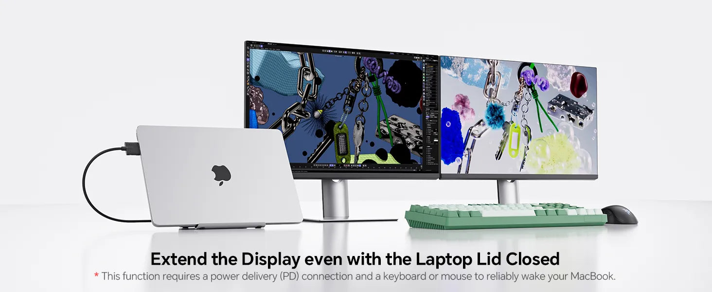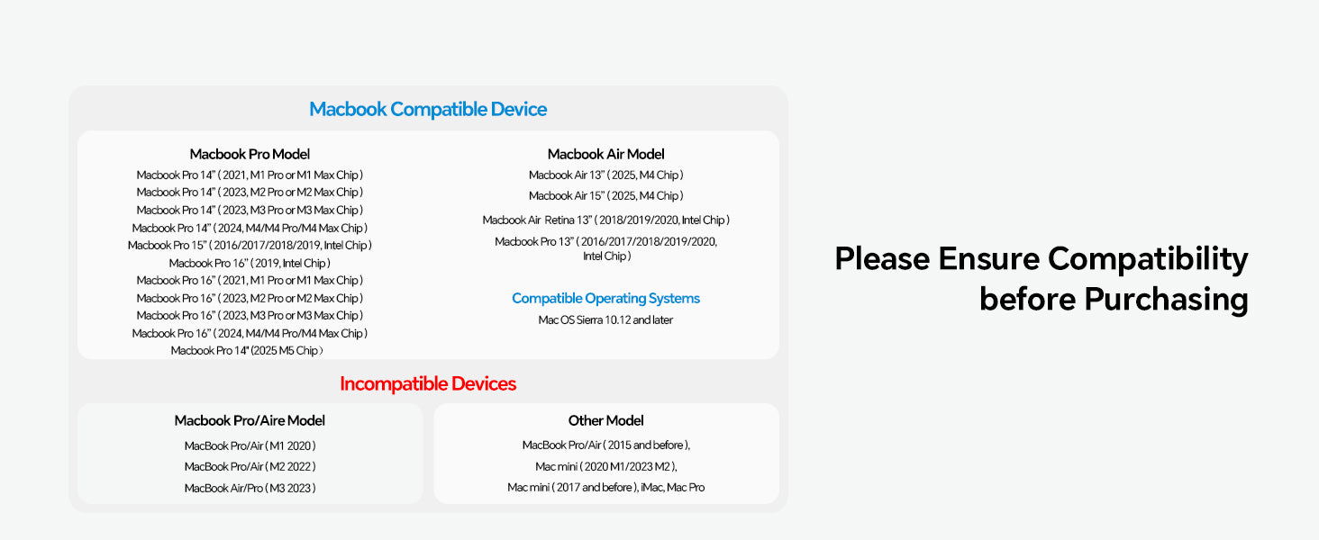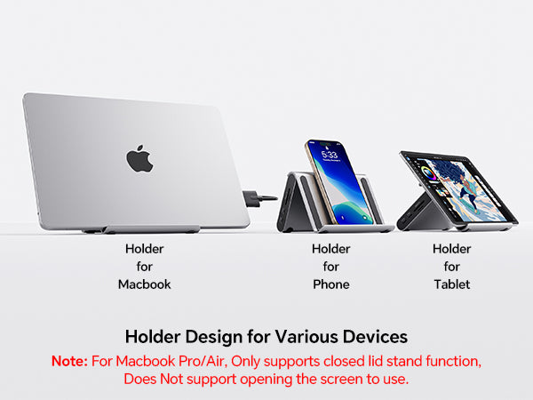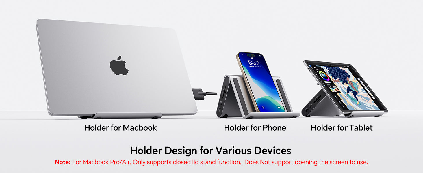 - 【Please Note】: NOTE 1: Power adapter and Power Cord is not included. Please connect a power adapter of 65W or above. NOTE 2: Do Not compatible with M1/M2/M3 Macbook. NOTE 3: Holder for Macbook Pro/Air, Only supports closed lid stand function, does not support opening the screen to use. NOTE 4: Do not support using with laptop case for stand function.