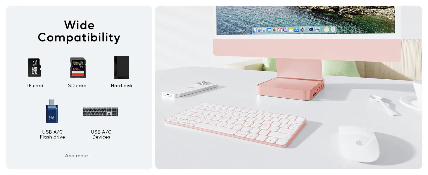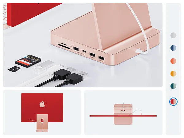 - Compatibility: The usb-c multi-port hub is compatible with iMac M1 with Type C port (need to support data transmission function), the embedded design only supports iMac 24-inch 2021 computers. In addition, the usb-c docking station also supports other USB C Laptops with port support data transfer function.