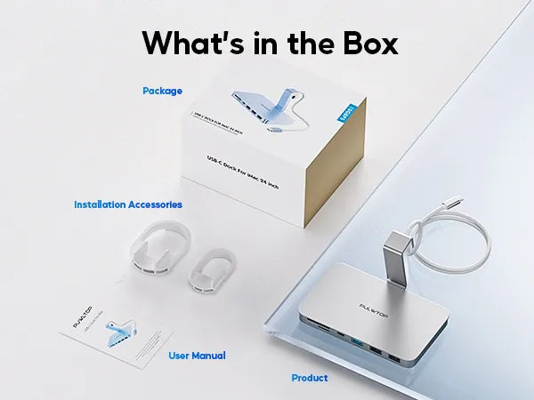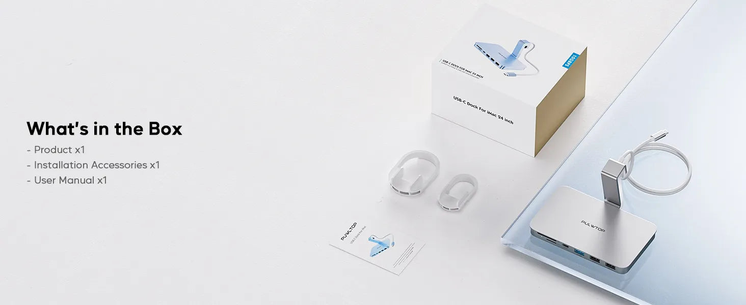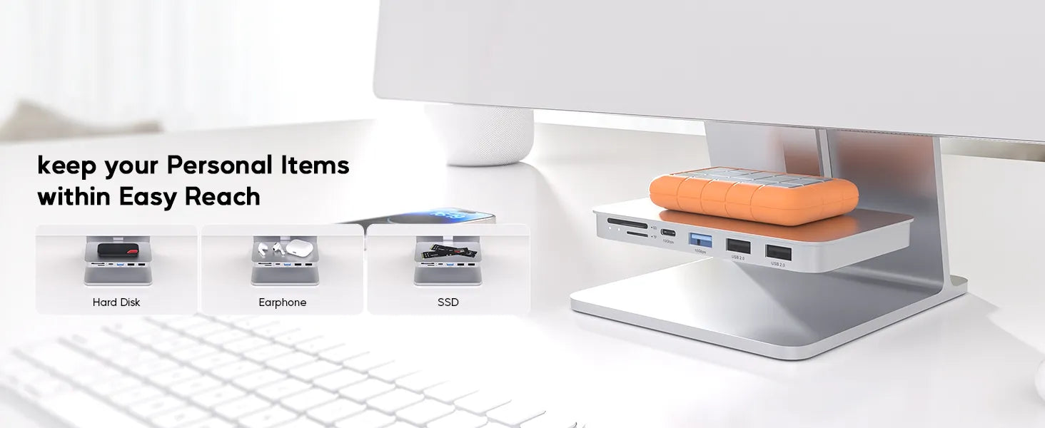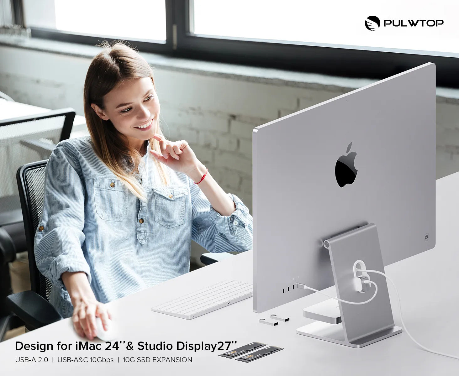 PULWTOP USB C Shelf Hub For iMac 24" M1/M3/M4 & Apple Display Studio( 7-in-1, M.2 SSD case, Silver)