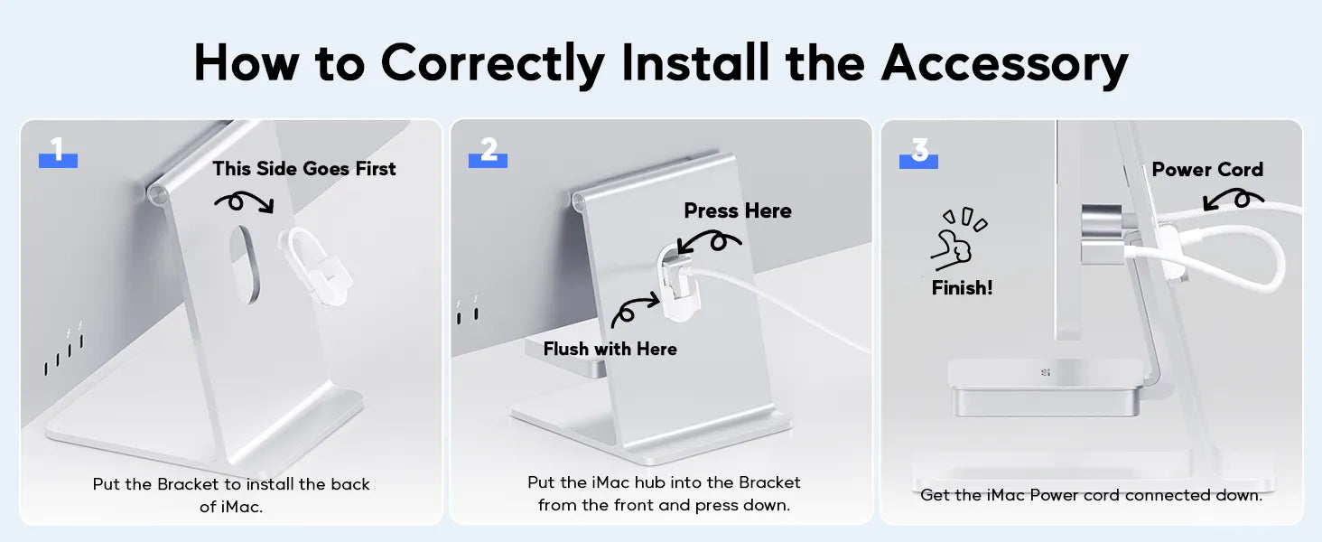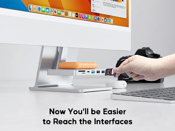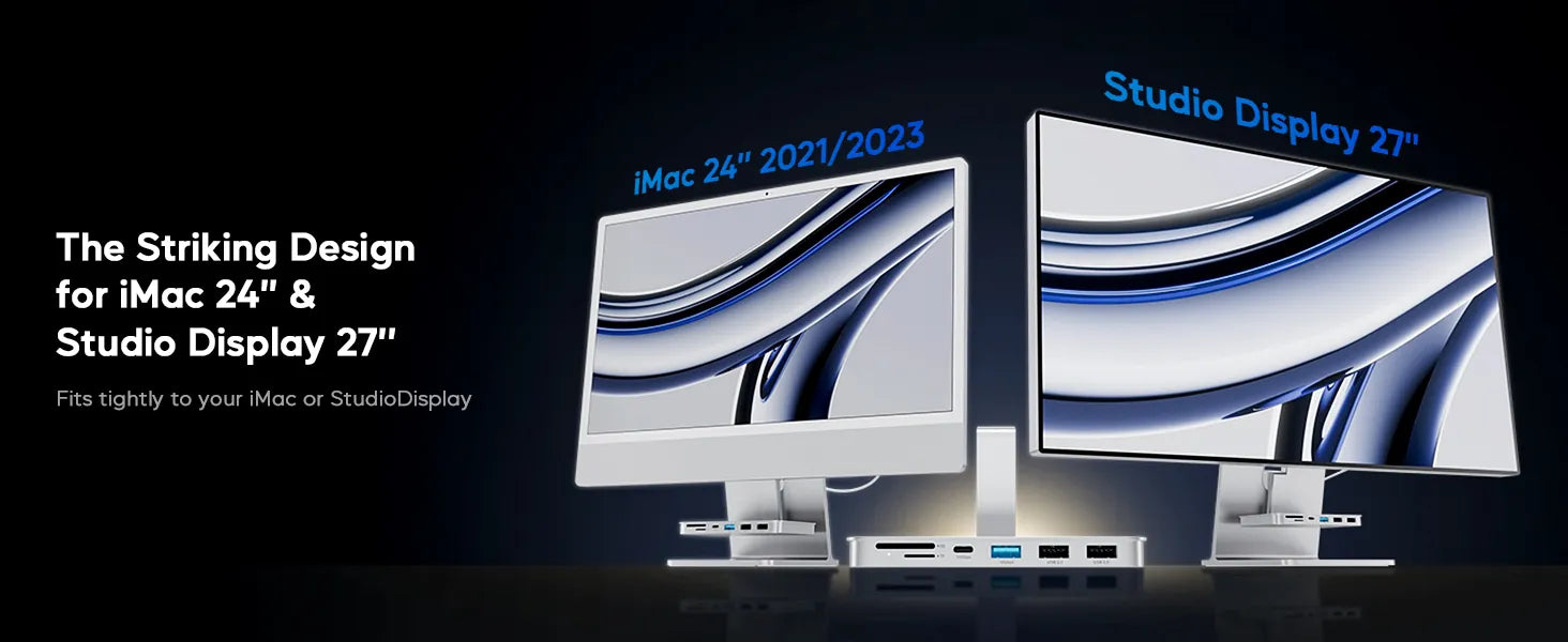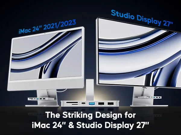 - 【Compatibility for iMac M1/M3】: iMac 2023 accessories are compatible with iMac M1/M3/M4 and Studio Display 27-inch. The hook-type design can be changed flexibly and is portable and lightweight. The iMac hub not only supports laptops which are with full-featured Type C ports, but also supports connecting hard disks, mice, and more USB devices to complete data transfer functions that is compatible with USB 2.0 devices.