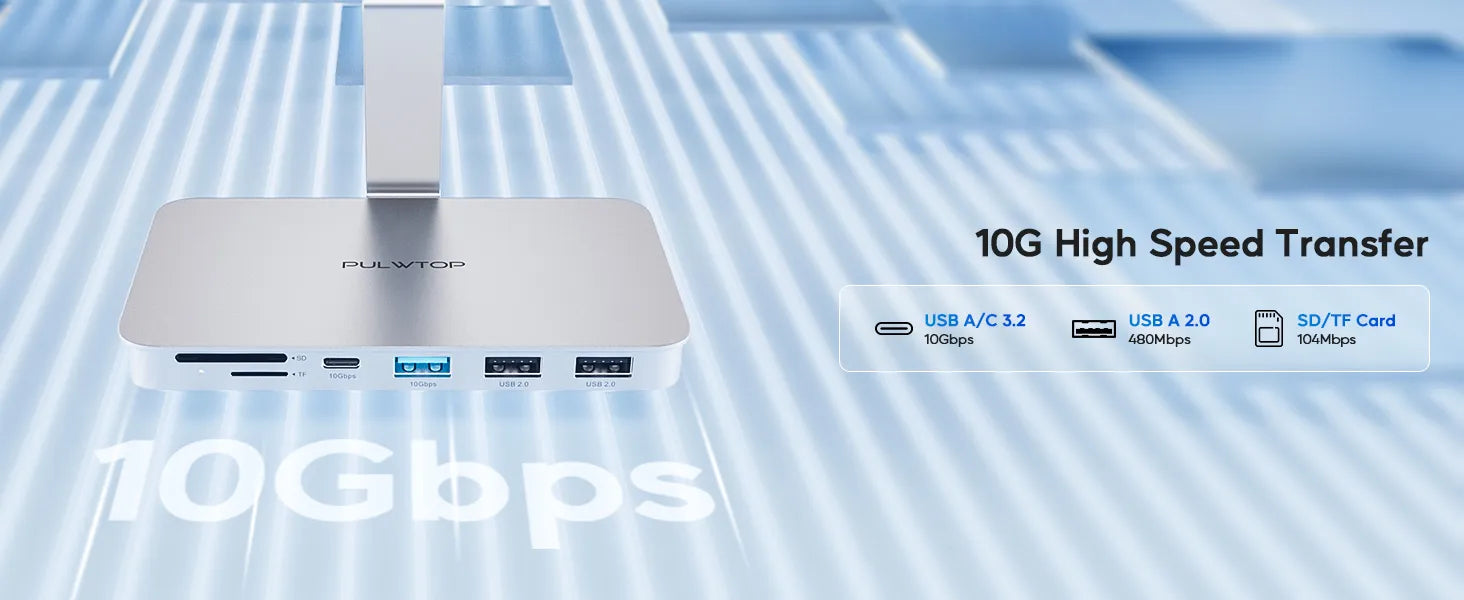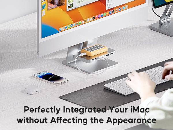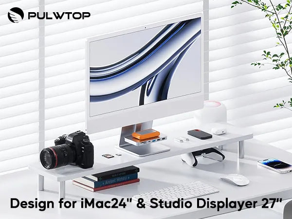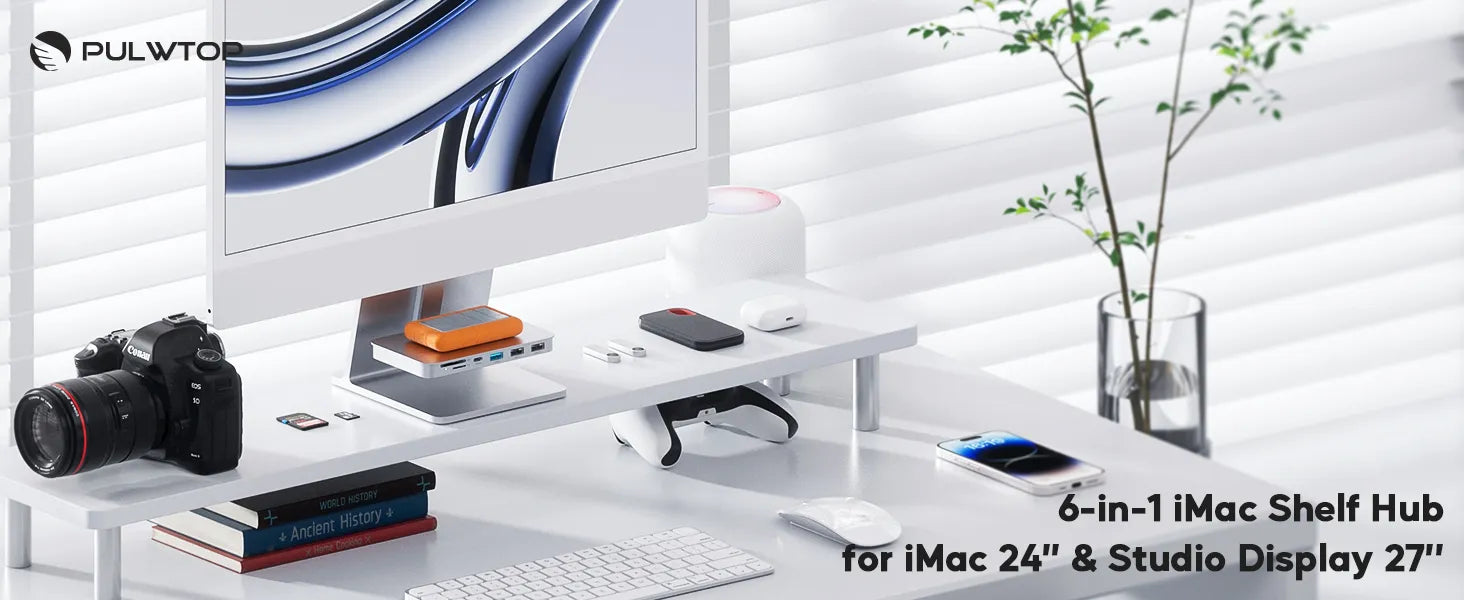 PULWTOP USB C Shelf Hub For iMac 24" M1/M3/M4 & Apple Display Studio ( 6-in-1, Silver)