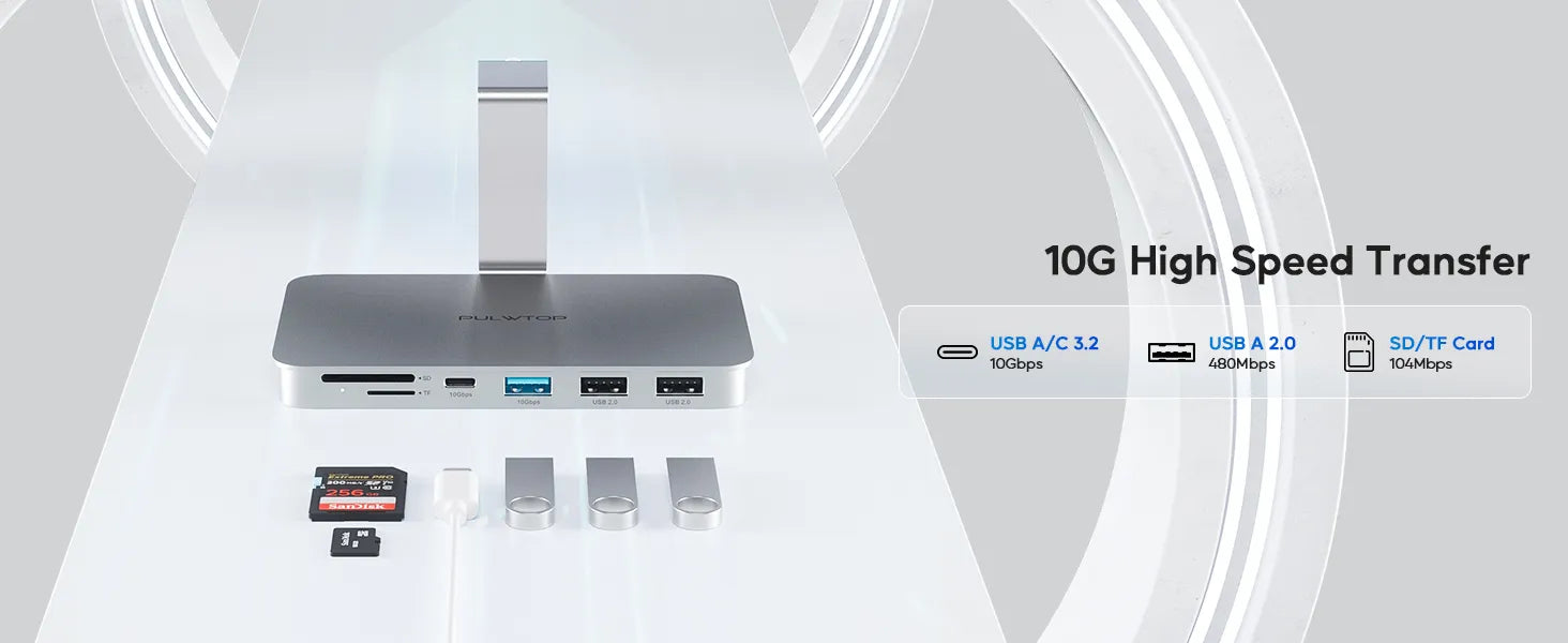 - 【Fast Transfer Speed】This iMac supports data transfer speeds of up to 10Gbps, which is 10 times faster than traditional USB 2.0. Whether you're transferring large files or synchronizing data, you can enjoy ultra-fast transmission with this USB HUB.
