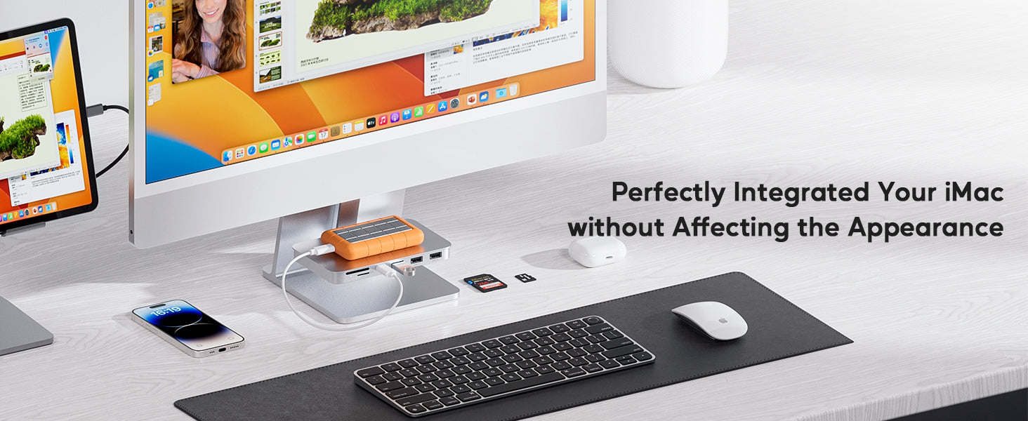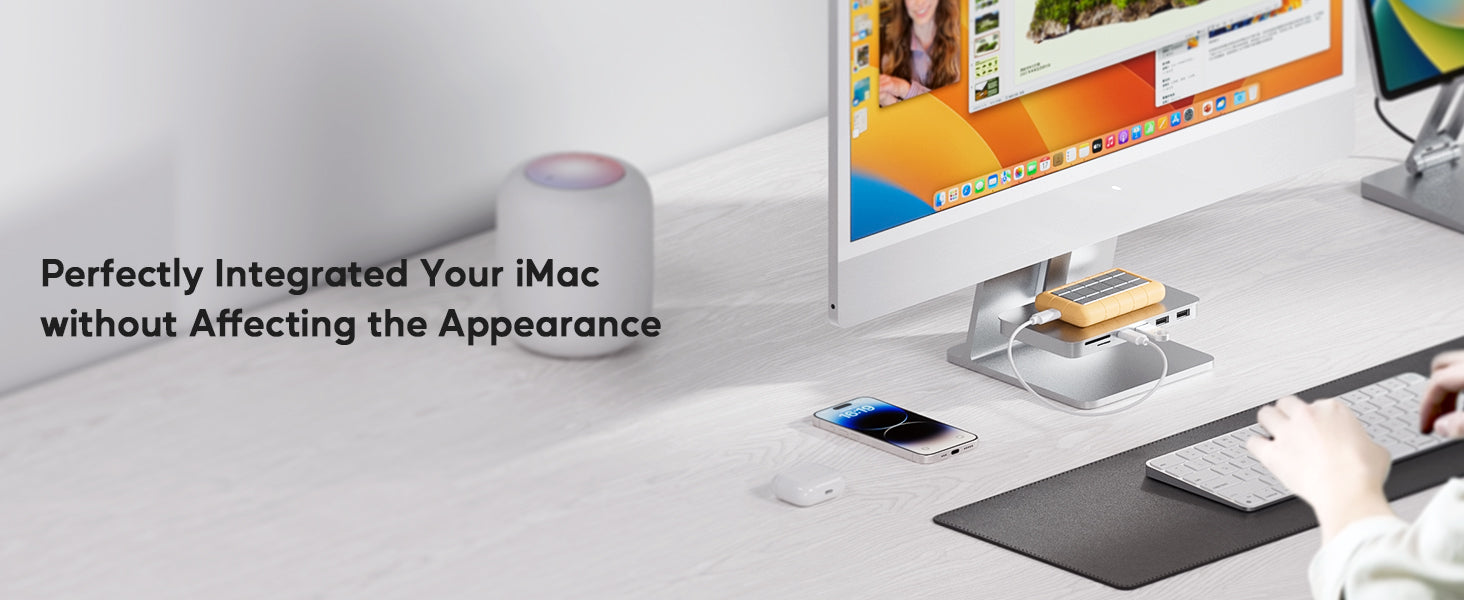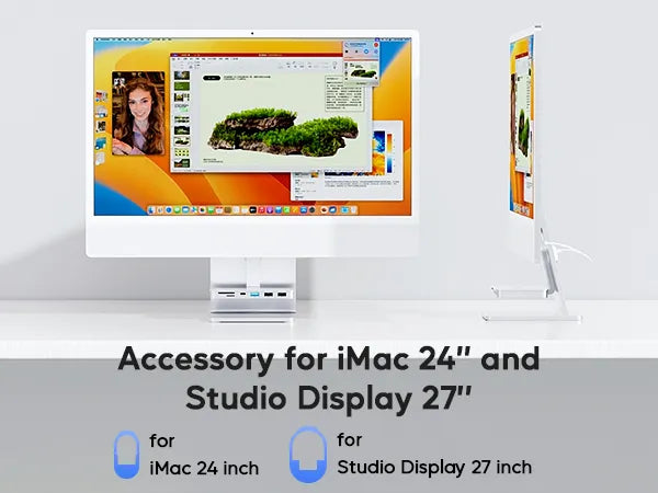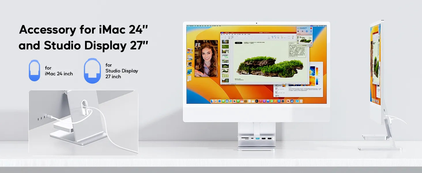 - 【Compatibility for iMac M1/M3/M4】: iMac 2023 accessories are compatible with iMac M1/M3/M4 and Studio Display 27-inch. The hook-type design can be changed flexibly and is portable and lightweight. The iMac hub not only supports laptops which are with full-featured Type C ports, but also supports connecting hard disks, mice, and more USB devices to complete data transfer functions that is compatible with USB 2.0 devices.