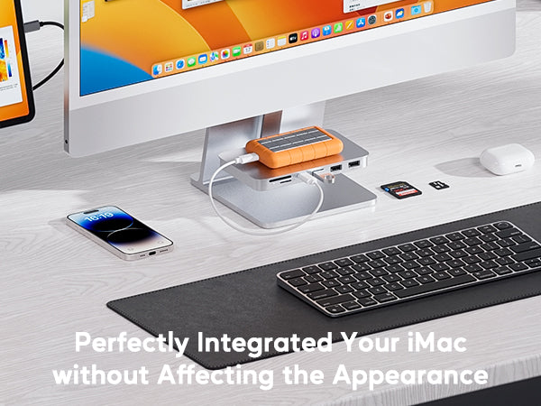 - 【Note】: The ports of the Powered USB C hub for 2021/2023/2024 iMac do not support video output and charging. This USB C hub for iMac features USB A/C transfer data ports to support disks up to 2TB. It could help to connect multiple devices at the same time without worrying about not having enough ports. Compatibility : The imac shelf hub only compatible with iMac 24-inch M1/M3/M4 (2021/2023/2024) & Studio Display 27-inch 5K Retina display with only Tilt-adjustable stand Version ( Not Support Tilt- and height-adjustable stand & VESA mount adapter), Note: Not compatible with imac 2020 & Earlier version and Pro Display XDR