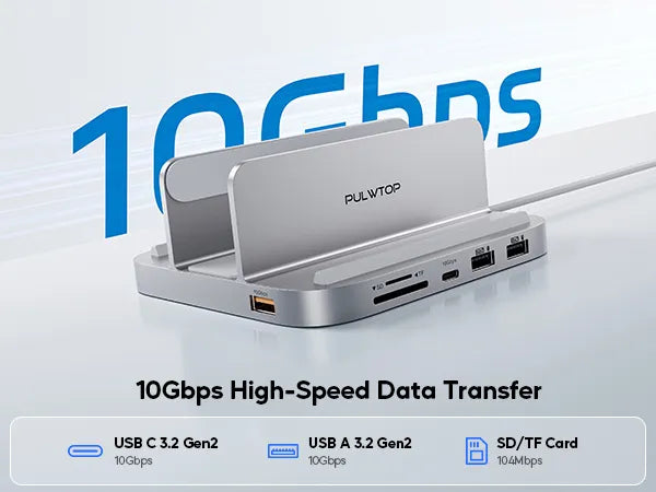 - HIGH-SPEED TRANSMISSION - The high-speed USB C & USB-A data ports deliver up to 10Gb/s transfer speed, allowing you to transfer large files in seconds. 2 x USB-A ports (480Mbps) to provide more connectivity options such as USB flash drives, keyboards, mouse, tablets, printers and more. *NOTE: ALL USB C/A ports ONLY support data transfer, DO NOT support video and charging.