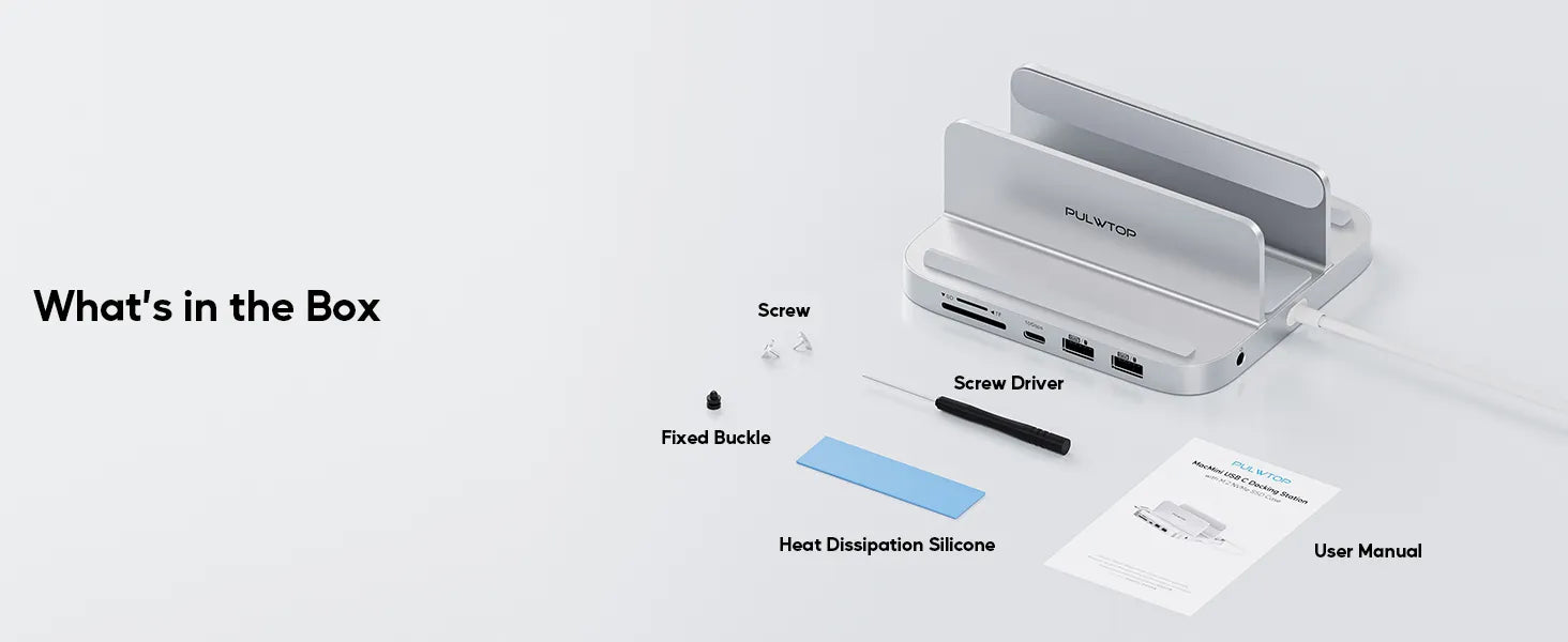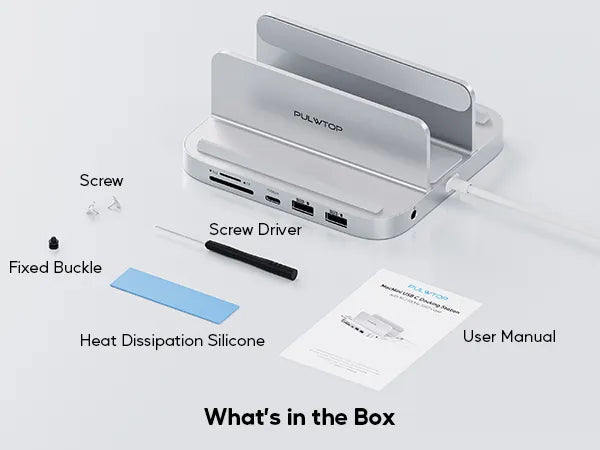 PULWTOP 8-in-1 Vertical Mac Mini Dock ,Mac Mini Hub Stand with M.2 PCIe NVMe SSD Enclosure